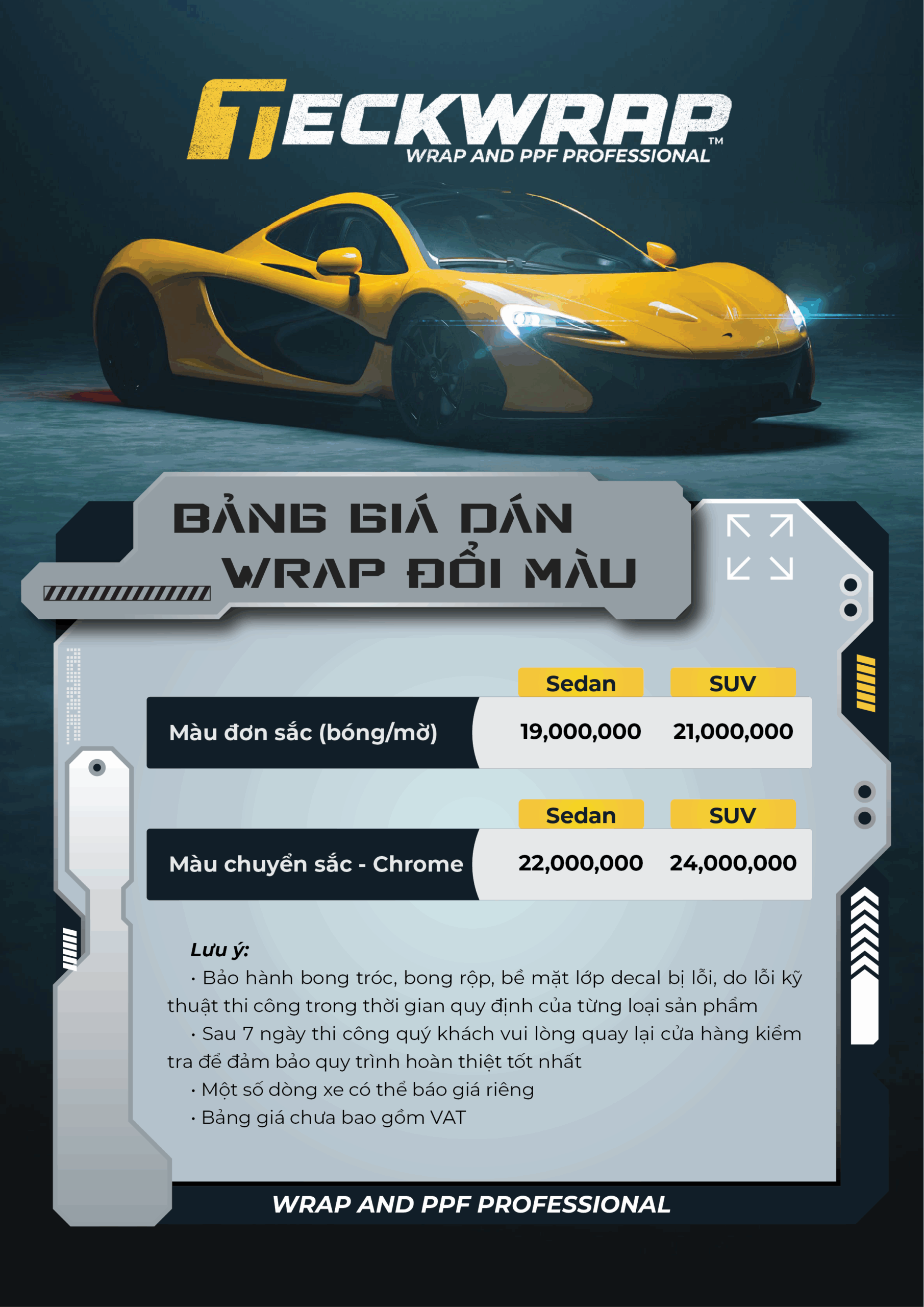 Bảng giá dán đổi màu Teckwrap ô tô tại Biên Hoà
