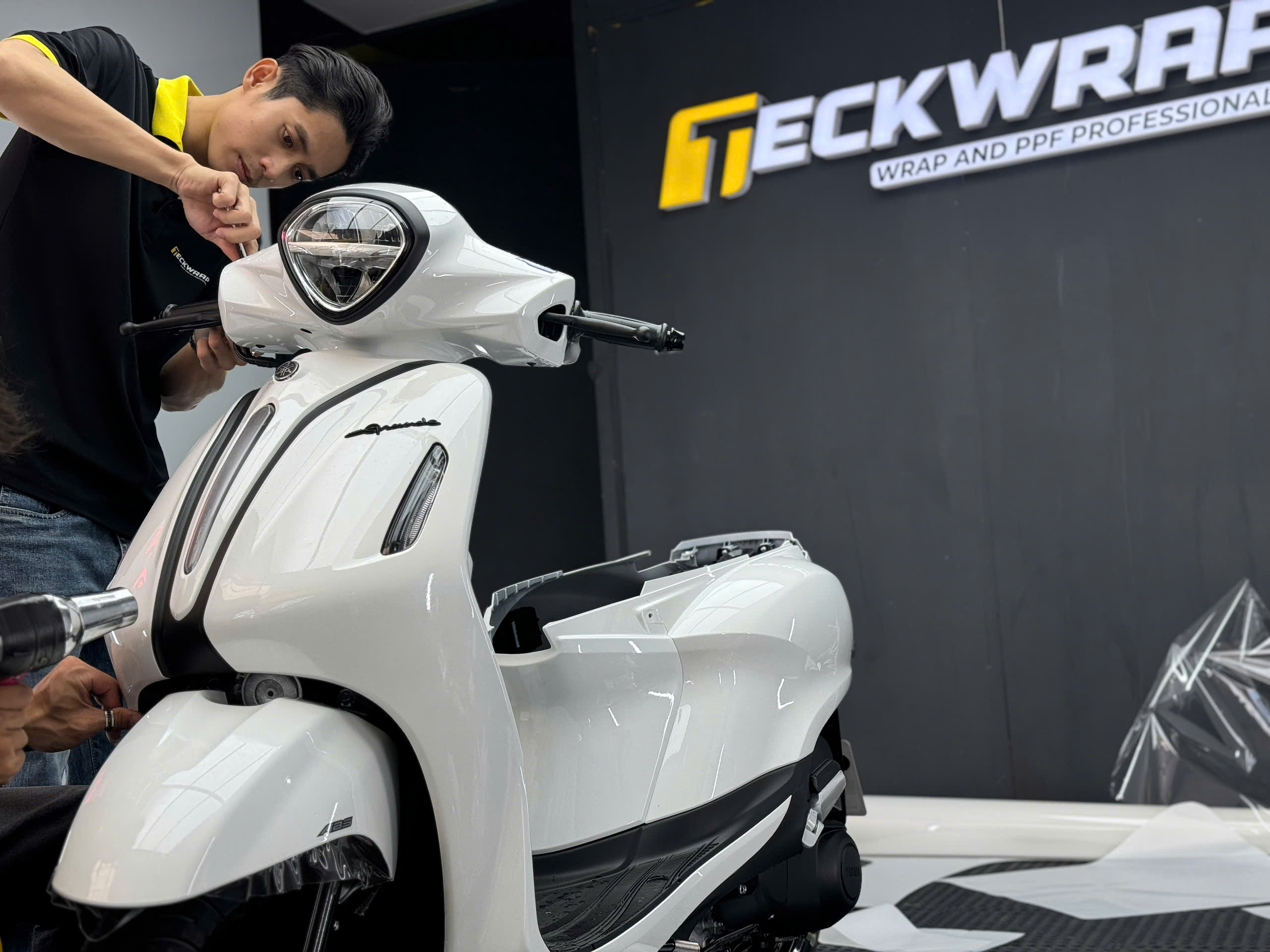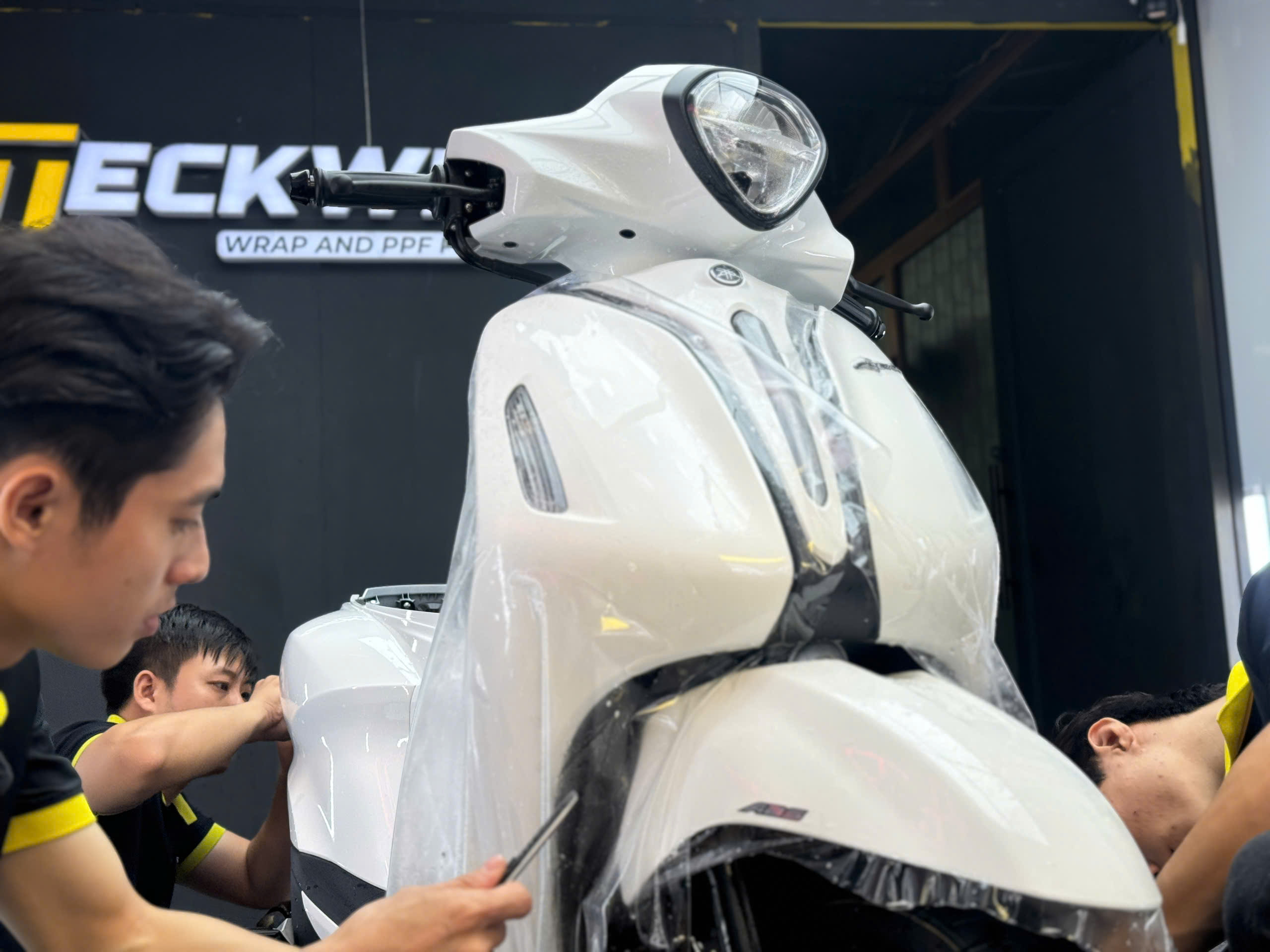 Quy trình thi công chuyên nghiệp khi dán PPF TPU xe Yamaha Grande